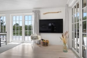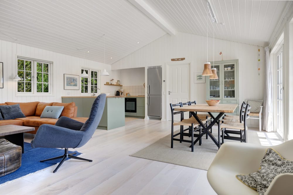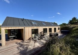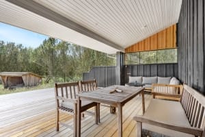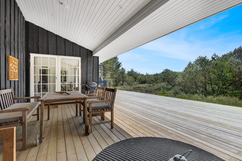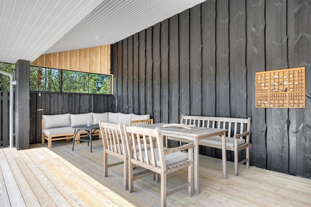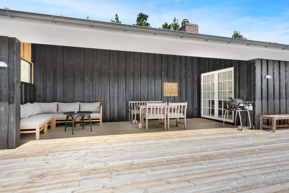 Med den nye tilbygning er der skabt mere plads til afslapning og samvær, og den store terrasse giver optimale rammer for at nyde de rolige omgivelser udendørs.